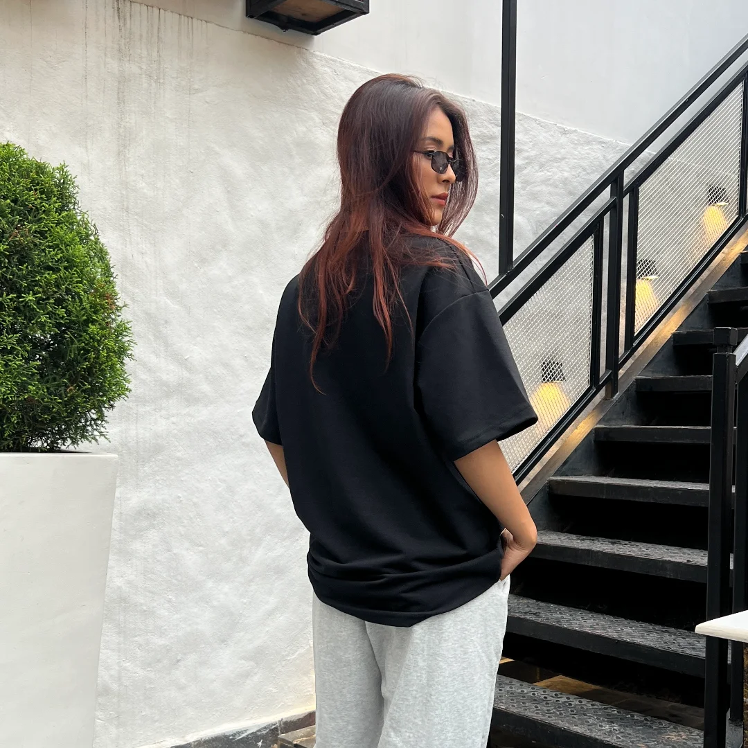 Embracing every detail, the high neckline boasts a formidable 3cm thickness, elevating both aesthetics and functionality. Supported by strong neck ribbing, our tees ensure a timeless silhouette that withstands the test of time.